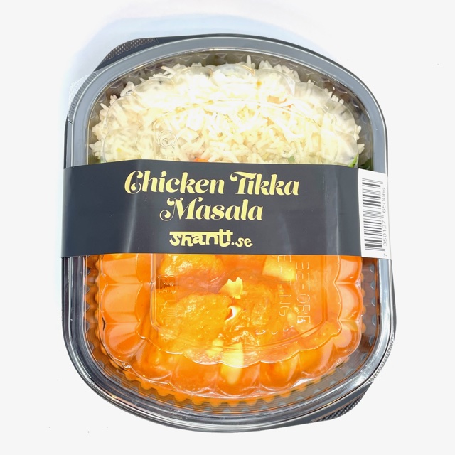 Ingredienser: Ris (ris, MJÖLK, SMÖR, kardemumma, spiskummin, salt), kyckling, YOGHURT, GRÄDDE, tomat,lök, ingefära, vitlök, SENAPSFRÖN, paprikapulver, chilipulver, gurkmeja, korianderfrön, garam masala, rapsolja, linsspad, socker, örtsalt.